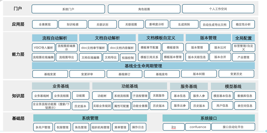 基于流程基線、功能基線、服務基線、模型基線等,梳理信息之間的關系,分企業級、系統級、功能級結構化展示